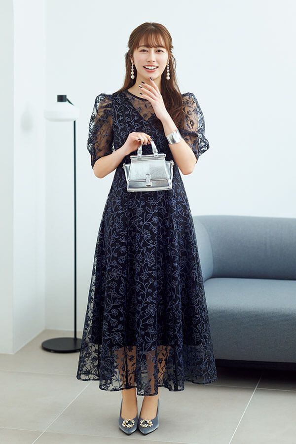 [バッグは使い回し]ワンピース¥19,910/LILY BROWN イヤリング¥4,820/ニータ(ロードス) バングル¥7,830/アビステ 靴¥8,500/ミッシュマッシュ×オリエンタルトラフィック(ダブルエー)