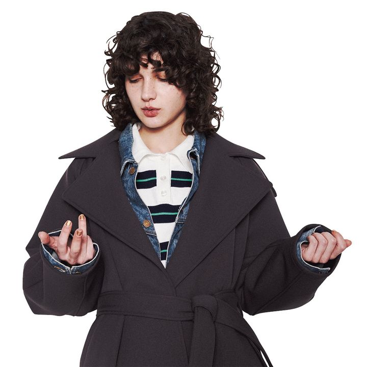 コートの「前を閉じて」首元で印象チェンジ