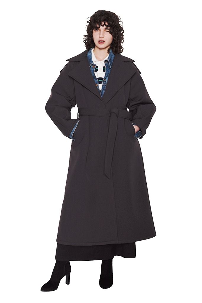 ストールやスカーフ、マフラーなど首元のアレンジが整いやすいノーカラーのアウター。ブラウスのように飾り立てられる大ぶりなつけえりで、見慣れたコートをモダンに昇華。