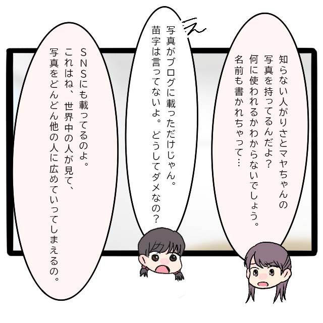 「SNSにも載っているんだよ??世界中の人が見て写真がどんどんいろんな人に広められる可能性があるの。」