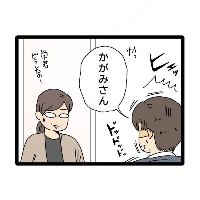 突然あらわれたかがみさんに心臓の鼓動が止まらない学さんに、