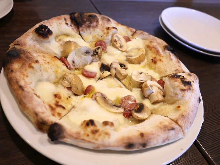 ホワイトソースのピザなので、マシュルームとチョリソーの味をしっかり感じることができて、すごくおいしかったです!