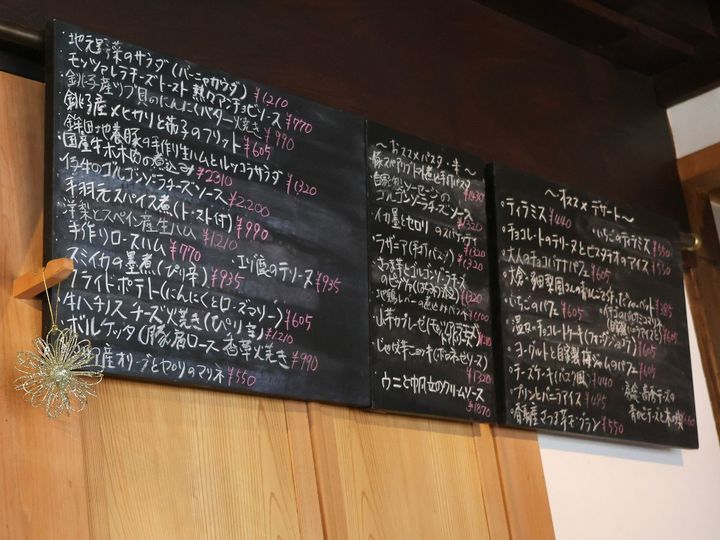 店内にはディナータイムに頼めるアラカルトのメニュー表があり、料理を待っている間にじっくり見ていたのですが、どれもとってもおいしそうで、