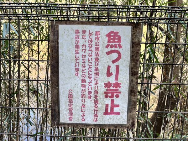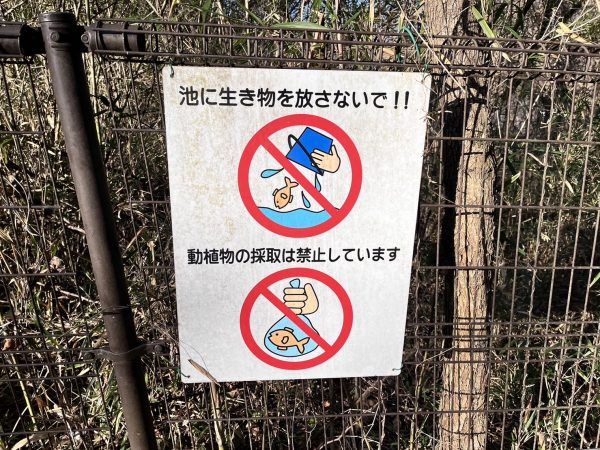 そのため、園内には魚釣り禁止といった保護に関する看板を多く見かけました。