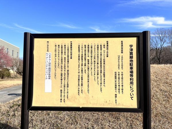 ですが、こちらにバスが停まるのは平日の朝のみです。それ以外の時間にバスで来られる場合は「宇津貫緑地入口」が最寄りとなりますのでご注意ください。宇津貫緑地入口バス停から緑地までは徒歩約5分となります。