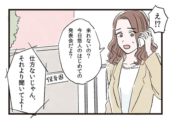 転職が決まり仕事に打ち込む夫に、遥は家事や育児をもっとやってほしいと言いますが、夫には理解されません。数ヶ月後、夫の上司・真人にホームパーティに家族で呼ばれます。真人は普段から料理を担当していて、子どもの保育園や塾の送り迎えもほぼ半々。子どもが病気のときは、真人が仕事を休むことも多いとのこと。そんな真人が夫に極めつけの一言を…!