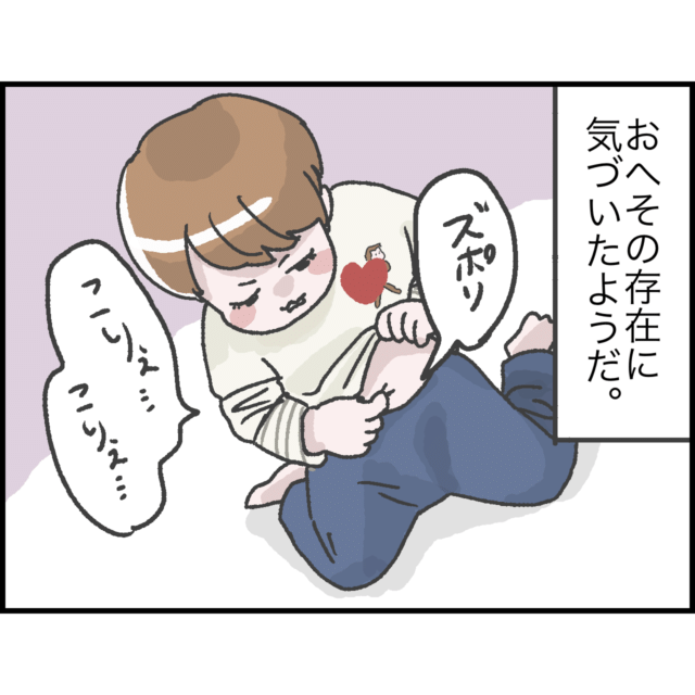 娘ちゃんがおへその存在に気付いたようです。