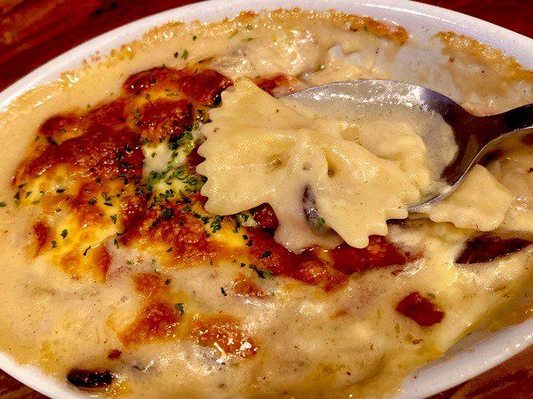 こちらも女性に人気のメニューですって!この寒い時期はマジで温もります♪ ペンネパスタだと火傷する方が多いので、リボンの可愛いファルファッレパスタ使用。 ひとくち食べただけでカラダの芯から温まるような熱!そして驚きの具だくさん!!! とりもも、玉ねぎ、しいたけ、ゴロゴロ具材が入っていて見た目よりもボリュームはんぱないです!ホワイトソースに白ワイン使用、まろやかで口当たりもよく、なんだか懐かしいホッとするようなお味。お好みでタバスコかけて味変もよきです。