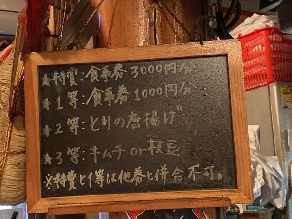 「焼き鳥一番」さんはフランチャイズ展開をしておりますが、各お店ごとに特色があり、中でも昭和町店さんのようなイタリアン色が強いお店は他にありません! 飲食代金が3000円超えたら1枚クジを引かせていただけまして。運が良ければお食事券やフードメニュー引換券がいただけるそうです♪ちなみに、ハズレ3枚でもドリンク1杯無料! このような取り組みも、昭和町店さんならではのようです。