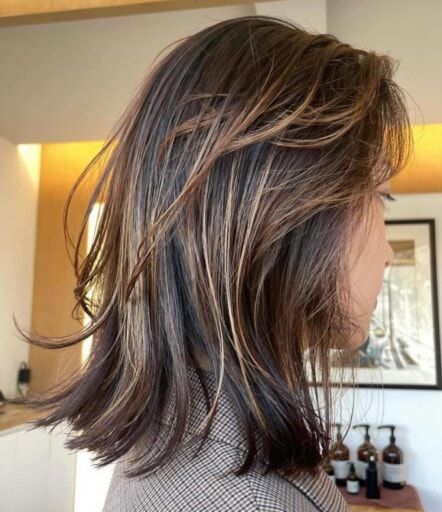 ベースの髪色はダークトーンの色味にすることが大人っぽさキープするためのポイント。また、ハイライトを効果的に使うことでナチュラルなスタイリングでも立体感が自然とでますし、まとめ髪にした時もおしゃれのアクセントになるでしょう。