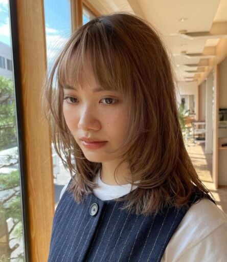 スタイリングのポイントは、顔周りの髪を内巻きにしてフェイスラインに沿わせるようにして顔の丸みをカバーすること。それだけで小顔感も高まりますし、ほんのり清楚で大人っぽい表情に仕上がります。なお、前髪を作るなら透け感を出すのがおすすめです。