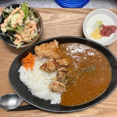こちらはからあげカレー。トッピングは変わることがあるみたいなので要確認!大盛りに盛られたポークカレーが食欲をそそります。
