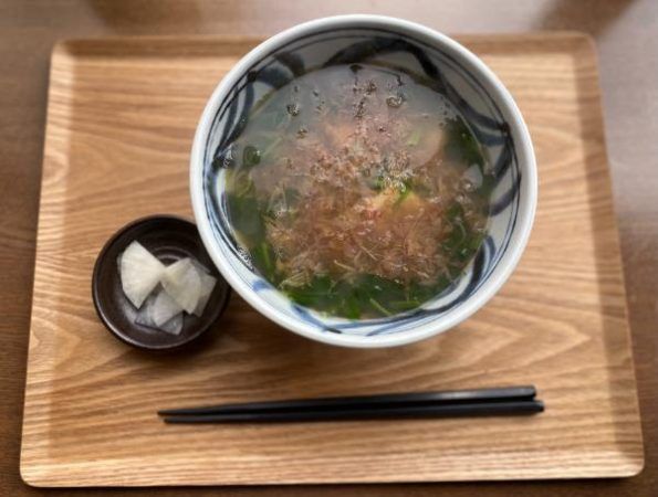 こちらは家康ぞうに。中身は餅、京菜、かつお節。このお店のある地域では、お雑煮とは、お餅が貴重だった時代にお餅そのものを楽しむための食べ物だったそうです。だから具もシンプル。胃にも優しい。家康公も食されていたとか(諸説あるそうです)。 こちらはお餅がなくなり次第終了のメニューです。