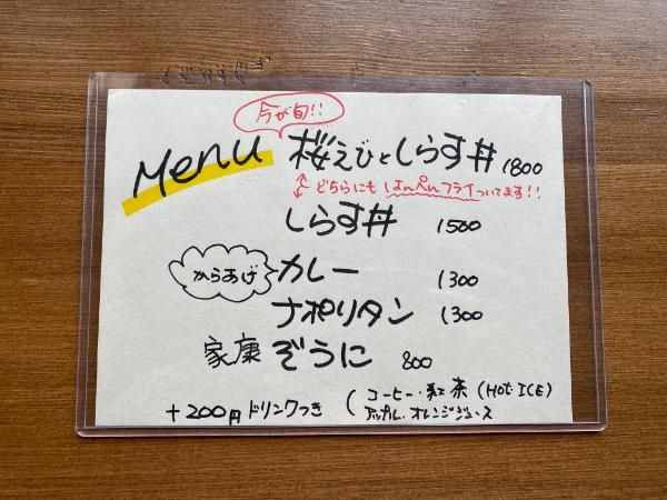 メニューは時期や仕入れの状況により変わることがあります。またメニューになくても作ってくれる料理もあるそうで、お店の方と会話しながら注文してみてください。土日祝日や平日は関係なく統一のメニューだそうです。