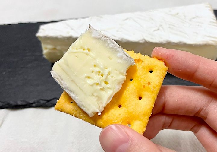 食べてみると、レストランで食べるようなクオリティの高さに驚き。白カビのほんのりとしたクセがありつつ、とろけるようななめらかな舌触り。500円以下で購入したとは思えない、香り高く上品な味わいです。そのまま食べるのはもちろんおいしいですが、パンやクラッカーにのせて食べたり、細かくカットしてサラダにトッピングしたりとアレンジも自由自在。フランス産まれの本格チーズを手軽に満喫できます。