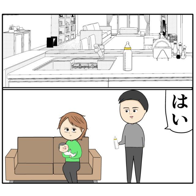すみれさんにミルクの準備をするように言われて、作ってもどってきた良し男さんは
