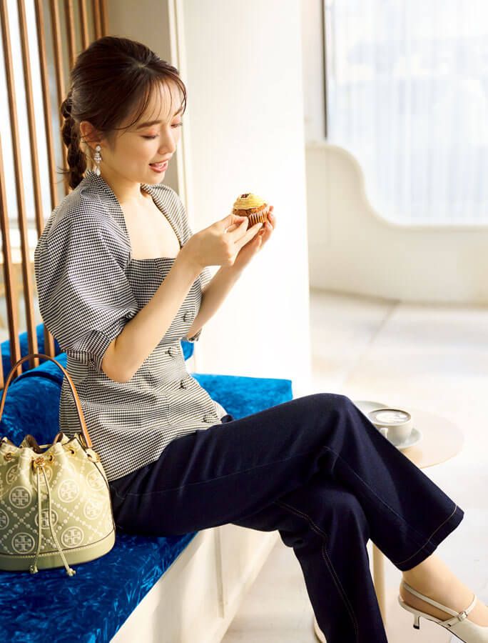 トップス¥13,420/SNIDEL パンツ¥6,600/index イヤリング¥23,100/masae(ロードス) バッグ¥99,000/トリー バーチ(トリー バーチ ジャパン) 靴¥13,200/アンタイトル