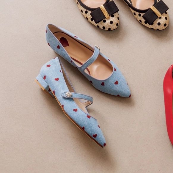柄シューズながら、ヘルシーなデニムで大人な印象を叶えてくれる。デニムに映えるハートが乙女心をくすぐる♡