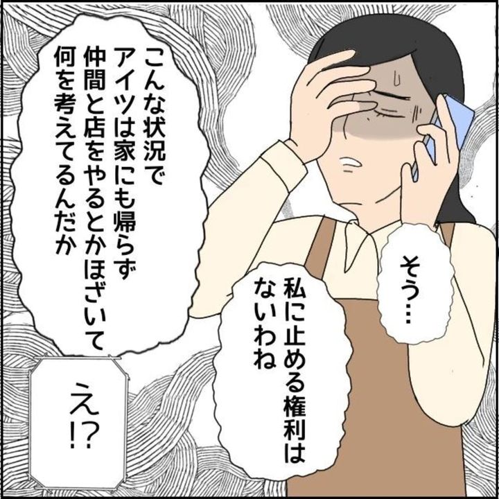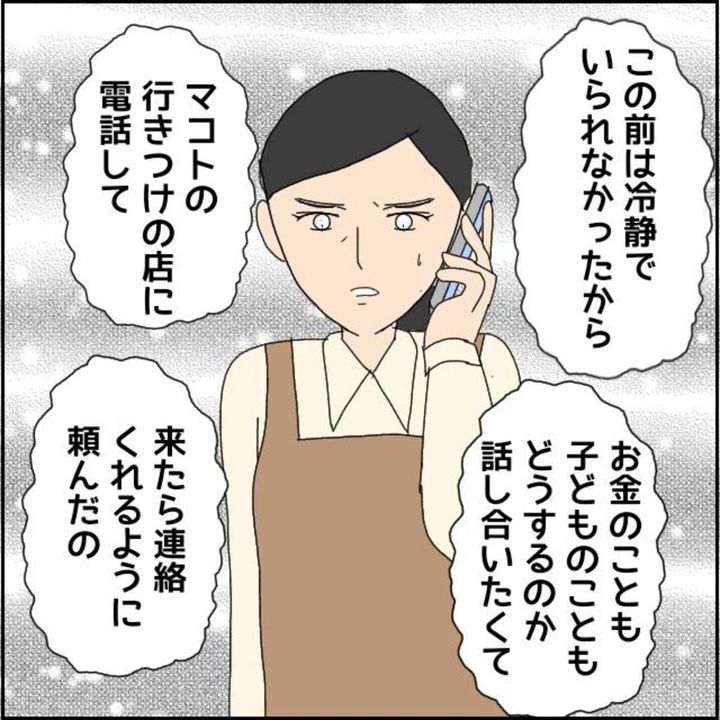 マコトとの離婚を決意した妻は、マコトの姉からの連絡を受けて店にかけつけたのでした。突然の妻の登場に驚き、青ざめたマコト。妻の姿を見て何を思ったのでしょうか。