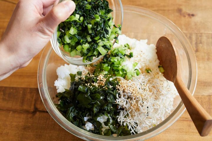 3. 火を使わないから手軽!「小松菜とじゃこの韓国風わかめご飯」のレシピ