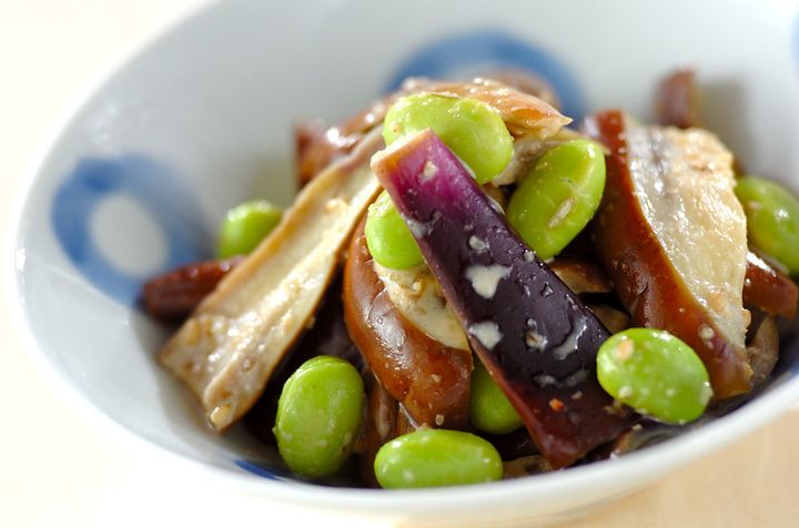 レンジで簡単に作れる副菜を覚えておくと便利です。食卓への出番が多いナスは油を使う料理が多いですが、レンジを使えばヘルシーに作れます。彩りよく枝豆も合わせましょう。できたてよりも少しおいたほうが味がなじみます。
