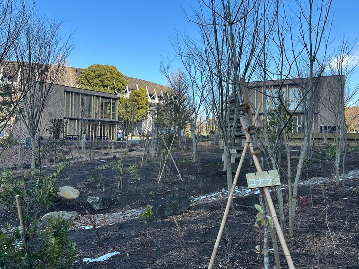 たくさんの木々が植えられている空間。100年後も続く杜となるように落葉樹をメインに植樹されているそうです。現在は冬なので全く葉が無い状態ですが、季節が変わり芽吹く様子や秋には葉の色が変わっていく様子などを想像すると、四季の移り変わりで公園の雰囲気もかなり変わってくるように感じます。