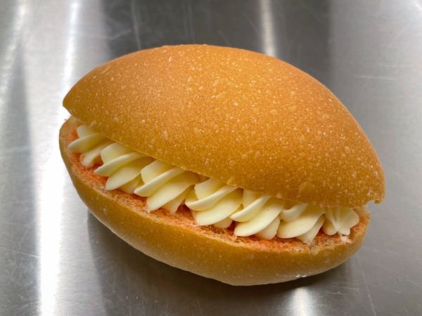 そしてもう一つ!クリームのひだひだがかわいい「福さ屋の生明太ミルクフランス」(250円)。焼き上がったパンに、福さ屋の生の明太子を塗り、甘いクリームをトッピング。クリームの甘さと、明太子の風味&塩味がほどよくマッチして、クセになりそうな味わい。今までにありそうでなかったパンですね!リピート確定!