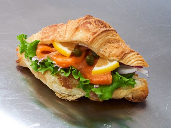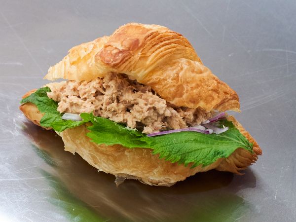「大葉と博多のツナマヨのクロワッサンサンド 」450円 博多っ子の味、甘口のたまり醤油でつくったツナマヨを、大葉とともにクロワッサンでサンドしました。