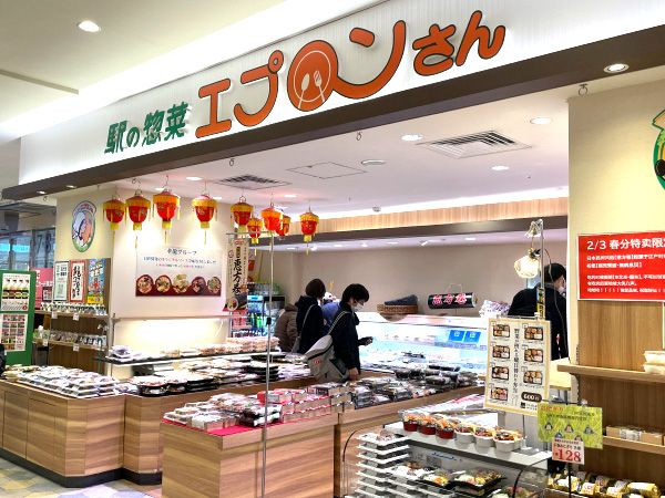 博多駅構内、マイングの一角にある「駅の惣菜 エプロンさん」では、さまざまなお弁当や惣菜を販売していて、お昼ごはん時にはたくさんの人で賑わいます。