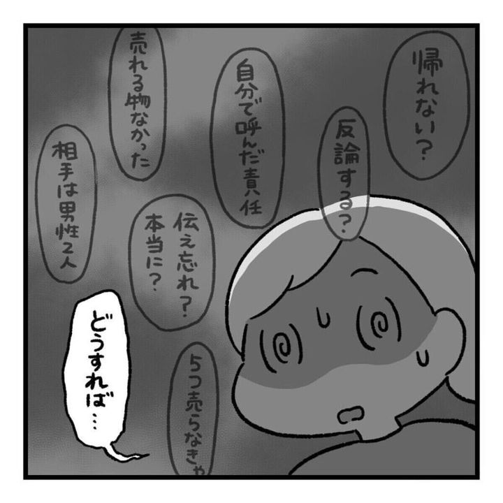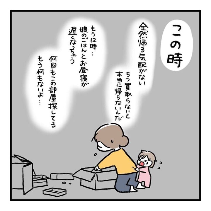 業者の言葉に疑惑を抱きながらも、言われるがまま品物を次々と出してしまったミワカモさん。子どものご飯とお昼寝の時間が迫っており、とにかく「早く帰って欲しい」という気持ちでいっぱいでした。