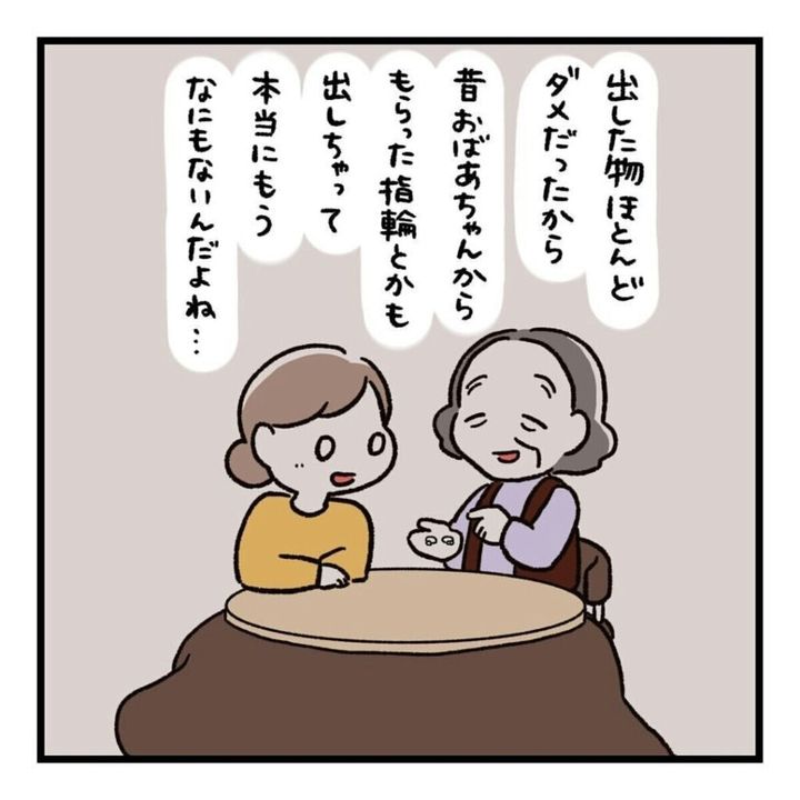 早く終わって欲しい一心で、次々と売るつもりのなかった物を業者に見せてしまったミワカモさん。ところが、業者はなかなか納得してくれません。しかも、祖母との思い出が詰まった大切な指輪までだしてしまったのです。