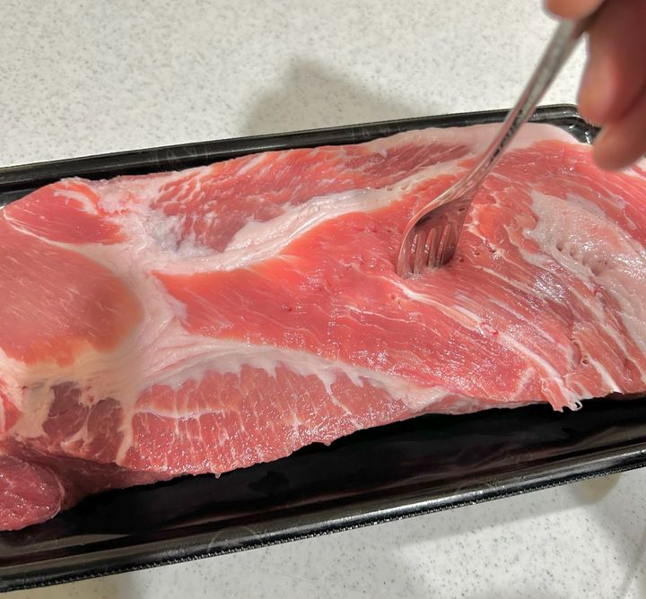 豚肉は肩ロースか豚バラ250gから300gに穴をあけ