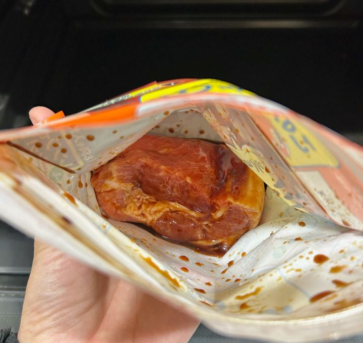 ジッパーをしめてからお肉をモミモミしてソースをからめたら