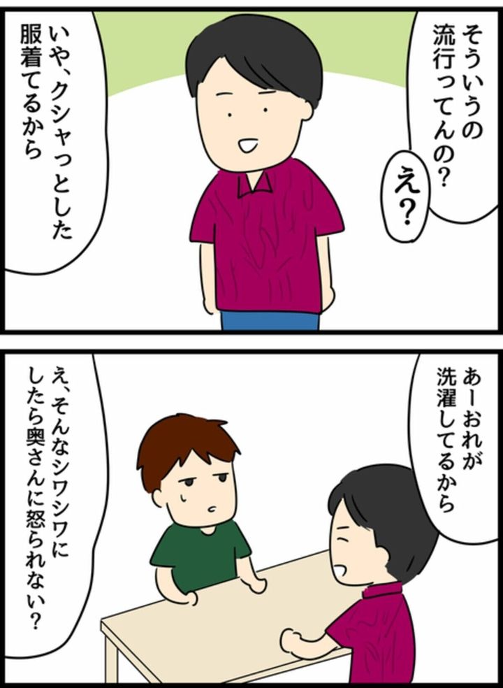 家事が嫌なのではないと語るエスオ君が気がかりなのは、エムコちゃんに指摘されること。家事のやり方への考え方が違うことは、夫婦生活でのもやもやの元になっているのかもしれませんね。