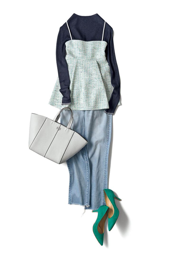 [バッグは使い回し]ニット¥8,470/LILY BROWN キャミソール¥4,950/index パンツ¥20,500/NORMA JEANS BLU 靴¥30,800/銀座かねまつ(銀座かねまつ6丁目本店)