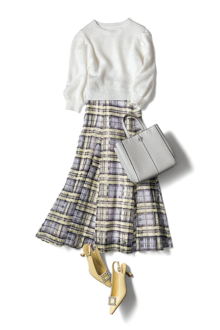 [バッグは使い回し]ニット¥6,930/WILLSELECTION(WILLSELECTION ルミネエスト新宿店) スカート¥14,300/MERCURYDUO(MERCURYDUO ルミネエスト新宿店) 靴¥8,910/RANDA