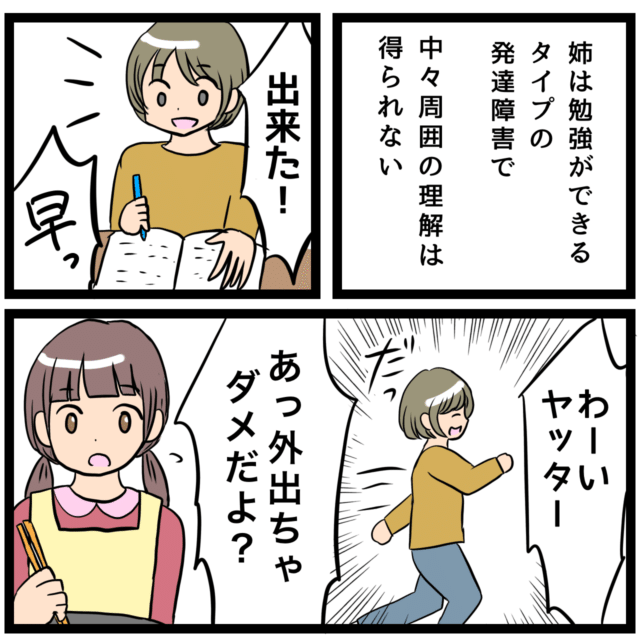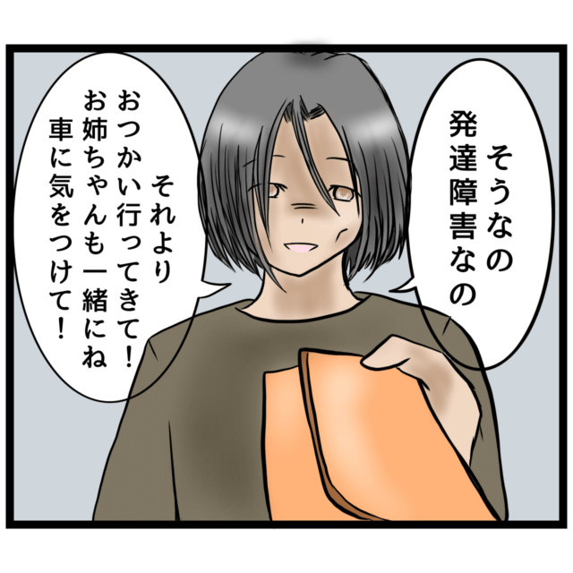 「そうなの、発達障害なの。それよりおつかい行ってきて!お姉ちゃんも一緒にね。車に気をつけて!」