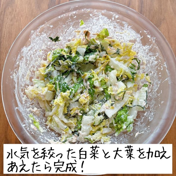 3. 鍋で余った白菜を大量消費!加熱不要「白菜と大葉のさっぱりコールスロー」レシピ