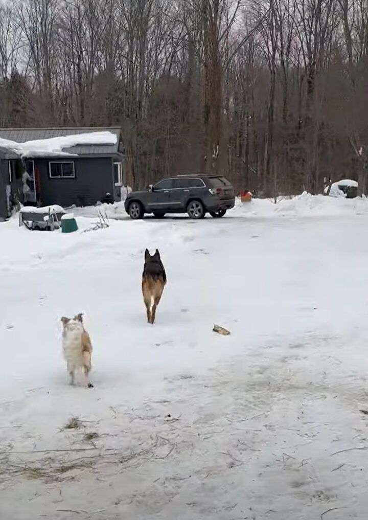 するとゴミ袋を運ぶバックくんの反対方向から、一緒に暮らすドゥードゥルが走ってきました! ドゥードゥルは避ける様子も見せずバックに向かって走ってくると・・・