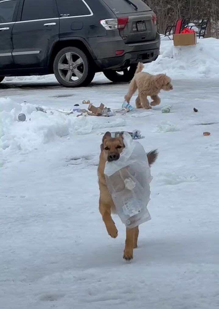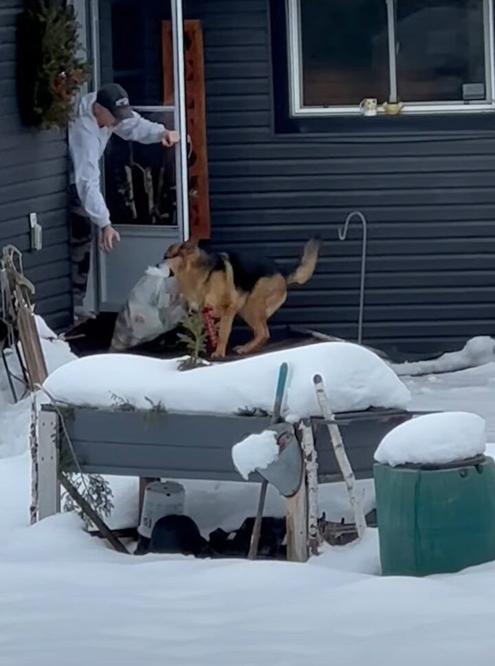 3. ゴミ出しを手伝ってくれる賢くて優しい愛犬。だけどみんな戸惑いうまさかのハプニングが!!【海外・動画】
