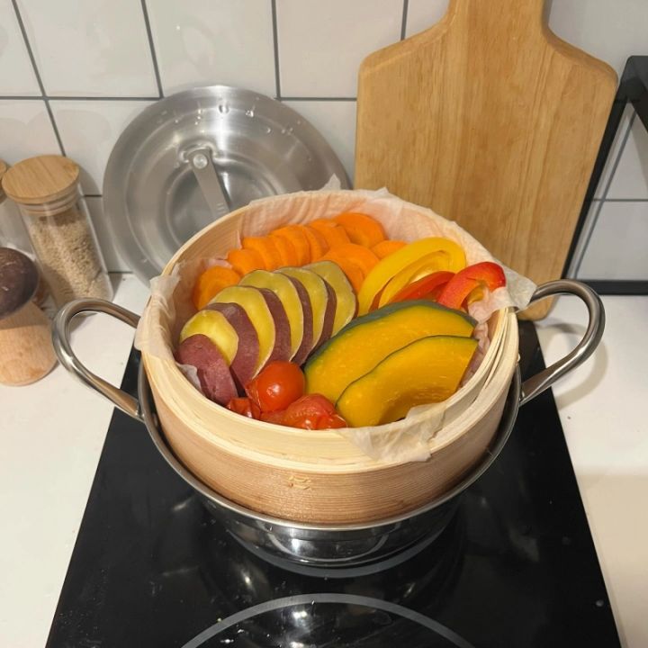 カレードリアだけでは不足しがちな食物繊維は、野菜のせいろ蒸しでカバーしましょう。野菜は蒸すことで甘みやうま味が増すだけでなく、栄養の流出も少なくなります◎お好みの野菜を蒸してゴマダレなどで召し上がってくださいね。