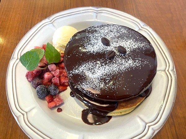 【珈琲館】ぜいたくにかかったチョコソースがたまrない!「とろける濃厚チョコソースのホットケーキ ~ダークチョコレート・カカオ58%~」