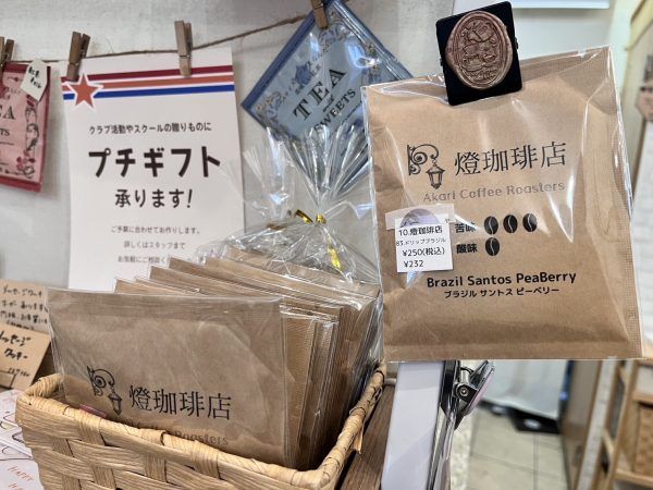 北海道の燈珈琲店さんのコーヒーなども取り扱われているので、ハンドメイド雑貨にこのクッキーやコーヒーを組み合わせてギフトにされる方も多いそうです。