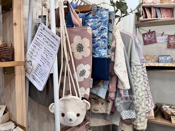 これからの季節、お作りになったり探されたりする方も多いであろう入園入学グッズもありました。オーダーも受け付けているそうですが、混み合ってくると仕上がりまでに時間もかかりますので、余裕をもって申し込んでほしいとのことでした。