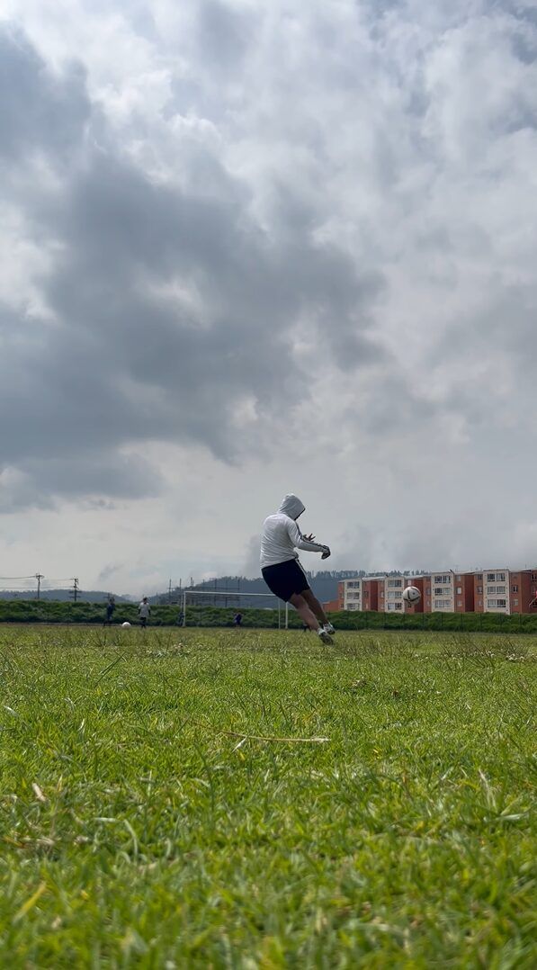 練習中のサッカープレーヤー。 綺麗なフォームでキックを決めましたが、まっすぐ飛んで行ったボールはまさかの場所へ!?