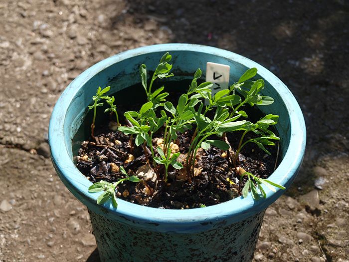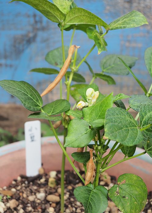 ある時、余っていたクロマメを何気なく土に蒔いてみました。すると、1週間ほどで芽が出てぐんぐん大きくなり、小さな花が咲いて実ができました。