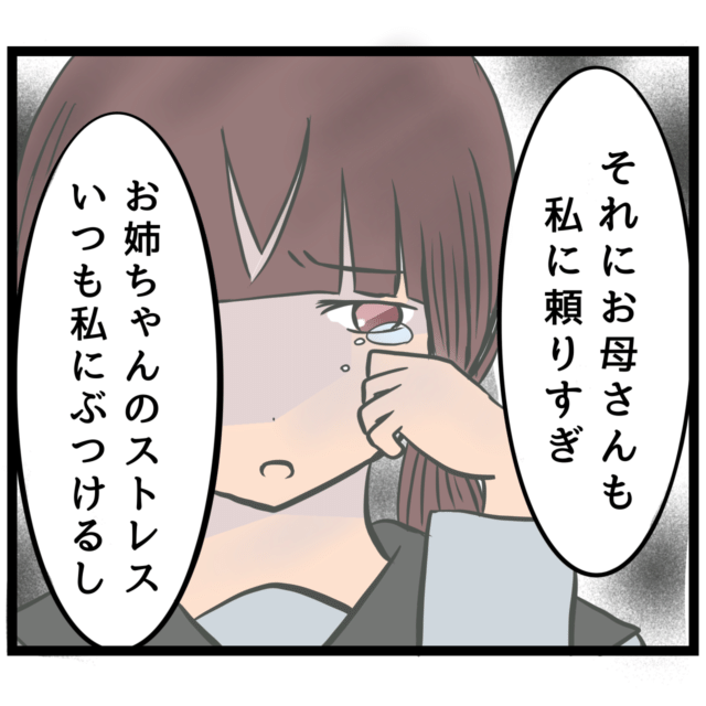 「それにお母さんも私に頼りすぎ。お姉ちゃんのストレスをいつも私にぶつけるし」
