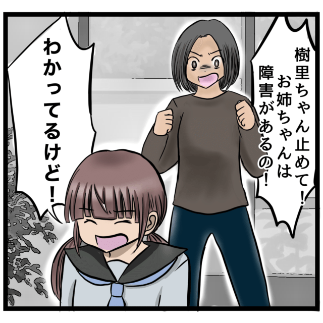 「樹里ちゃんやめて!お姉ちゃんは障害があるの!」
