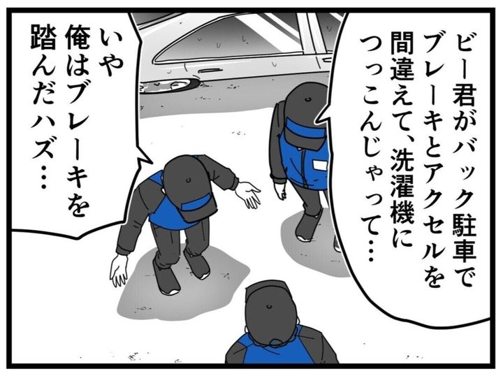ガソリンスタンドでアルバイトをする中、スタッフの運転ミスによる事故を初めて見たというちくまサラさん。事故を起こしてしまったビー君は事故の直前に店長と言い争いをしており、それが事故へとつながったようです。