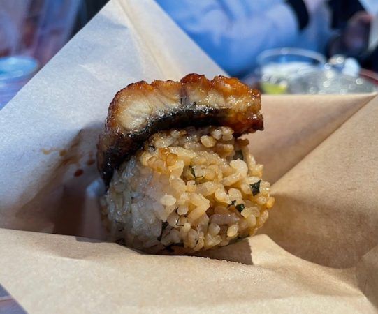 この鰻むすび!まぜご飯も鰻もふわっふわっでおいしかったあ。1個じゃ足りない!という方はお持ち帰りもありますよ。